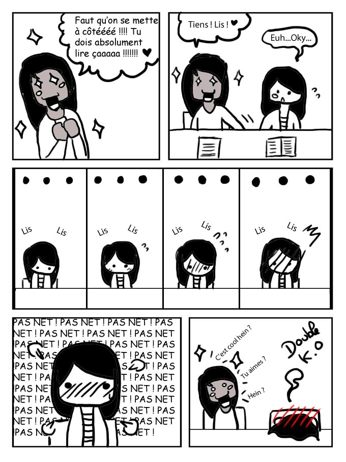 Quand j’étais au lycée, mon amie lisait beaucoup d’histoires avec des contenus assez cocasse (malheureusement c’est trop loin pour que je puisse me rappeler de quoique ce soit haha) en tout cas si tu passes par là, je te remercie d’avoir forgé ma jeunesse haha ! A bientôt !